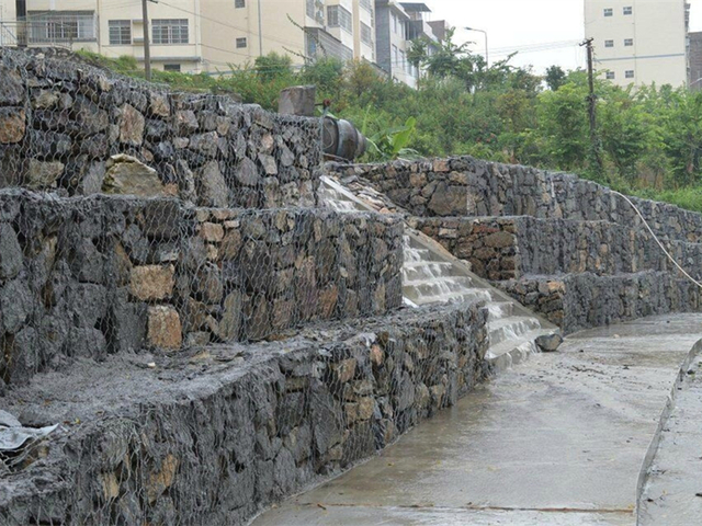 格宾石笼护脚是由特殊防腐处理的低碳钢丝经六角网编织机器拧编而成,再由网厂人工组装成的符合工程结构的格宾石笼结构,在施工现场用石料填充格宾石笼箱体,用于挡墙、河道护脚以及堤坝防护等结构。在边坡支护、基坑支护、山岩挂网、边坡绿化、铁路公路隔离护网等方面均可应用格宾石笼护脚,并可制成网箱、网垫,用于河流、堤坝、海塘的防冲刷防护。江河上最严重的灾害是水流对河岸的冲刷所造成的破坏,引发的洪涝灾害不仅会造成大量的土壤侵蚀,而且会危害到人们的生命财产。在处理这一问题时,格宾石笼护脚起着至关重要的作用,它具有以下几个特点,可使河床河岸得到长期有效的保护。