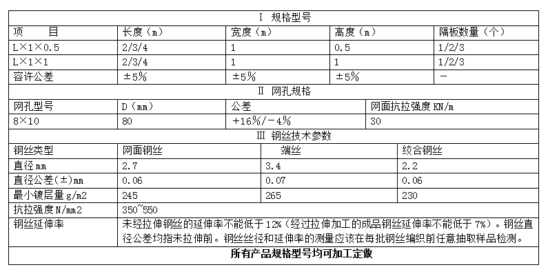 格宾石笼护脚主要产品规格: