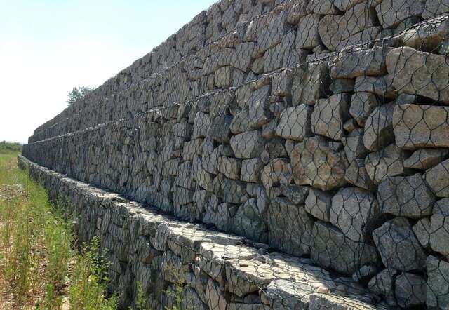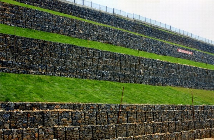 (5)灵活性好。防护格宾网的原材料可以是热浸镀锌低碳钢丝,形成网格的钢丝具有一定的强度,不易断裂,箱笼整体强度高。低碳钢丝具有适度的变形特性,可以将所有项目连成一体,不需要劈裂接头。即使网状金属线由于某种原因在结构中断裂,也不会影响结构的完整性。特别是在地基土沉降或墙后土体小变形的影响下,结构可以对自身的适应性进行微调,不会因不均匀沉降而产生沉降裂缝,也不会对整个结构造成破坏。